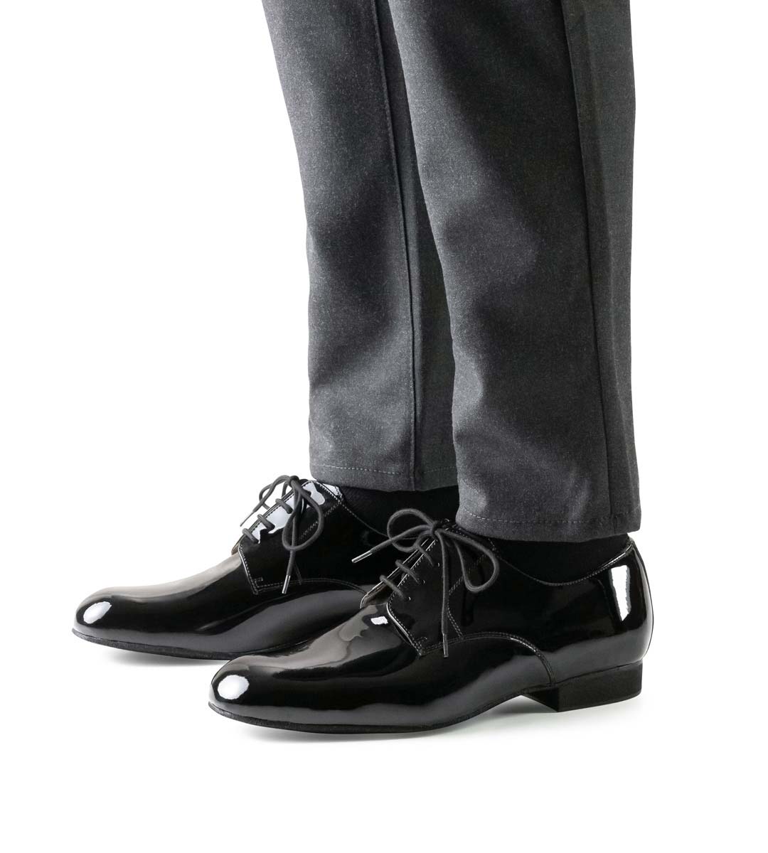 El cuidado de los zapatos de charol para baile es similar al de los zapatos de calle normales. Primero, elimine cuidadosamente la suciedad gruesa con un paño o cepillo. Después de seis a diez usos, se debe aplicar un poco de pulidor o producto de cuidado para charol. Este debe extenderse en una capa delgada sobre el zapato con una esponja suave y dejarse actuar durante unos 30 minutos. Luego, límpielo con un paño. - Brocatel